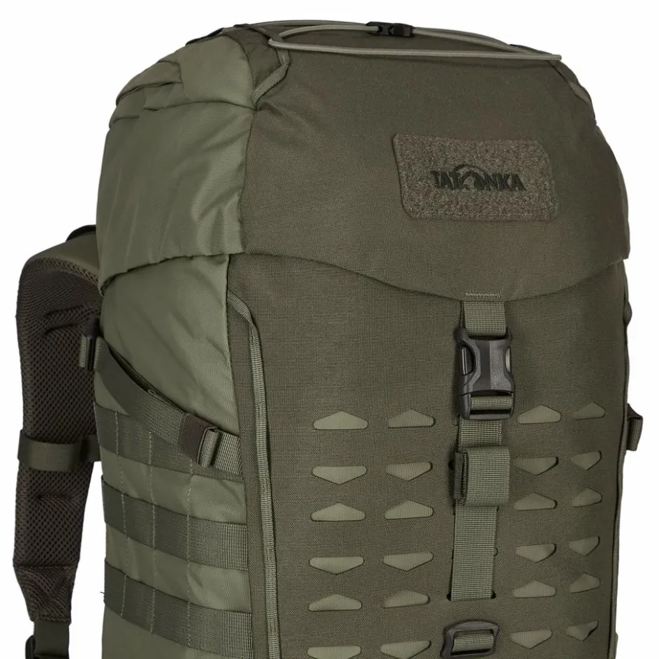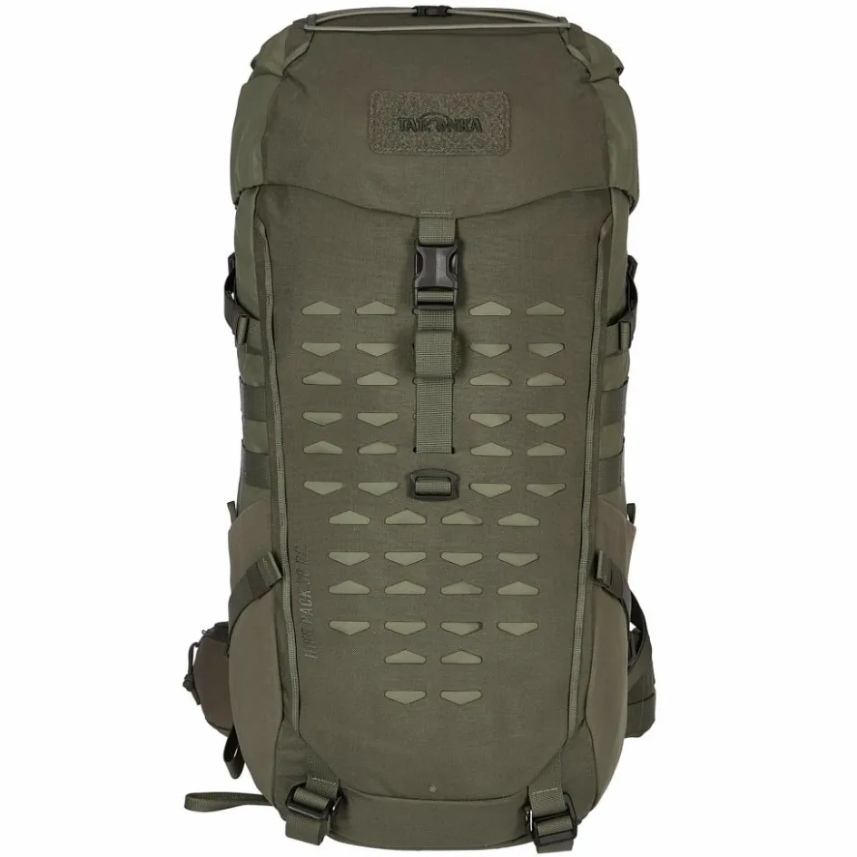 Axt, Messer, Tarp, Paracord, Hobokocher… alles kein Problem für den Hike Pack 30 BC. Dank großflächig verteilter MOLLE-Schhlaufen an den Seiten und am Hüftgurt, mehrerer Daisychains sowie Lasercut-MOLLE auf der Front kannst du deine Ausrüstung mithilfe von Spanngurten und Materialkarabinern (optional erhältlich, siehe Zubehör) flexibel und griffbereit am Rucksack befestigen. Der Hike Pack 30 BC lässt sich dadurch auch mit MOLLE-kompatiblen Taschen erweitern und perfekt auf dein individuelles Abenteuer anpassen.