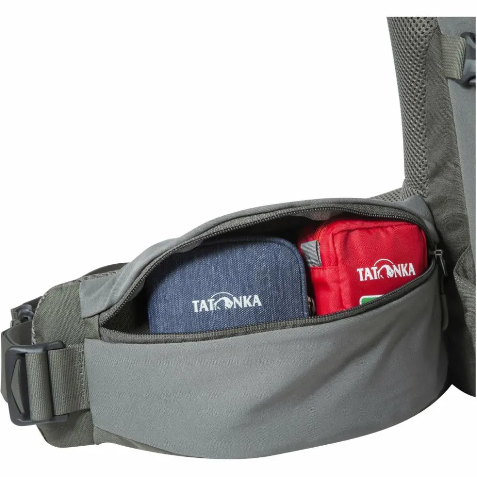 Dass Tatonka bei der Entwicklung des Pyrox 45+10 BC die Bedürfnisse von Bushcrafter:innen im Blick hatte, wird nicht nur an der unauffälligen Naturfarbe deutlich. Der Trekkingrucksack ist aus robustem Cordura gefertigt, sodass du ihn beim Abladen im Gelände nicht mit Samthandschuhen anzupacken brauchst. Dazu kommen vielfältige Möglichkeiten zusätzliche Taschen oder Ausrüstung mithilfe des MOLLE-Systems zu befestigen – perfekt um Werkzeug und Co. griffbereit anzubringen. Dank zweier Tragegriffe lässt der Pyrox 45+10 BC sich auch bei schwerer Beladung sehr gut handhaben.