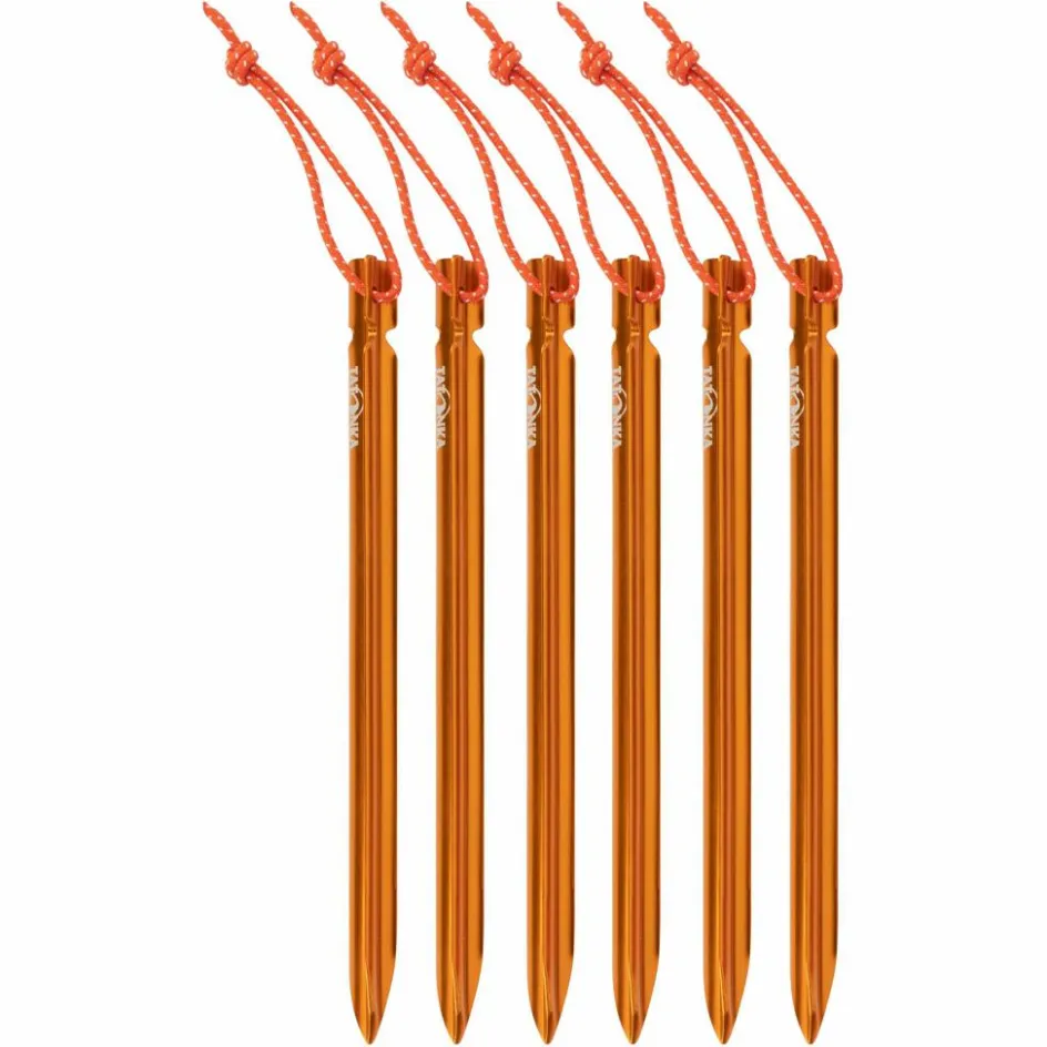Der leichte Aluminium-Zelthering besitzt ein Y-Profil und ist 15 cm lang. Die spezielle Y-Form verhindert das Verbiegen des Zeltherings und erleichtert das Einschlagen in harte Böden. In gut sichtbarem Orange und mit Schlaufe zum Herausziehen.