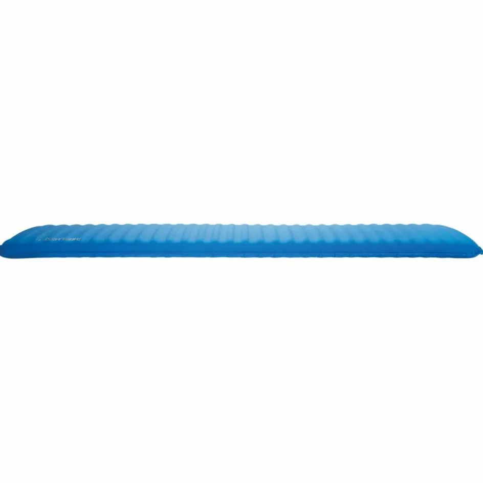Der Schaumkern bildet im Querschnitt eine durchgängige Mittellage mit aufgesetzten, alternierenden Luft- und Schaumstoffrippen. Ummantelt wird das Ganze von einer strapazierfähigen Unterseite und einem weichen Stretch-Strickgewebe auf der Oberseite. Das sorgt für angenehmen Liegekomfort und reduziert zugleich das Packmaß. Mit 1240 g bleibt das Gewicht in einem Bereich, der für viele Touren gut vertretbar ist, wenn das Gewicht nicht auf dem Rücken getragen werden muss.