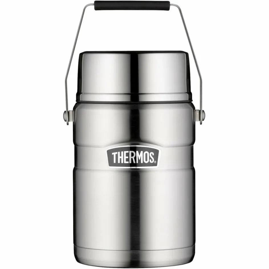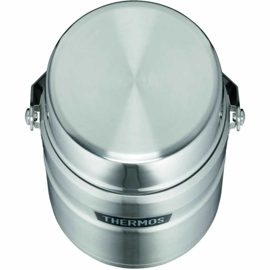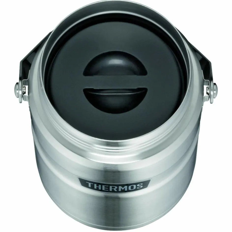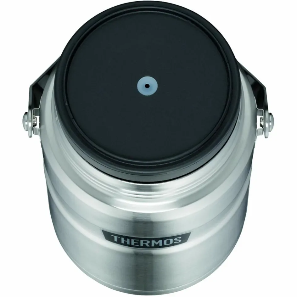 Dieser Thermosbehälter hält seinen Inhalt bis zu 9 Stunden heiß oder 12 Stunden kalt. Zusätzlich zur Vakuumisolierung ist die Innenseite der Außenschicht mit einer Kupferbeschichtung versehen.