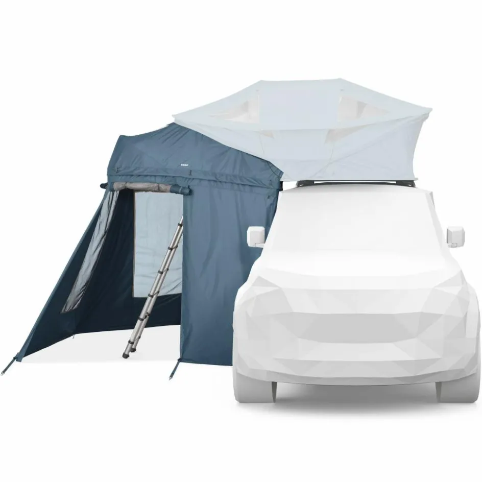 Das Praktische Approach Annex Vorzelt von Thule ist die optimale Ergänzung für dein Approach-Dachzelt. Vor allem an verregneten Tagen spendet es dir deutlich mehr trockenen Stauraum, beispielsweise für Tisch und Stühle.