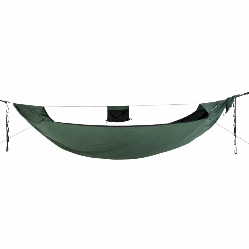 Durch die vier RV-Schieber kannst du von beiden Seite in die Lightest Pro Hammock einsteigen. Das integrierte und verstaubare Mückennetz ist aus hochwertigem Micromesh-Gewebe und bietet dir ausgezeichneten Insektenschutz. Durch das engmaschige Gewebe leitet es auch Wind ab und sorgt so für einen ruhigeren Innenraum. Die Breite erlaubt dir eine bequeme Liegeposition auch für längere Aufenthalte und Übernachtungen.