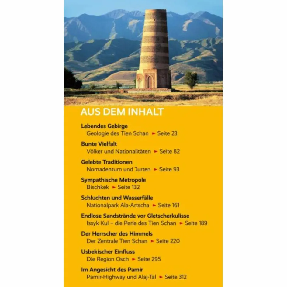 Eisriesen, Steppen und Halbwüsten, Jurten und Pferdeherden – Kirgistan am Fuß des Tien-Schan-Gebirges fasziniert durch einzigartige wilde Landschaften. Der Trescher-Reiseführer Kirgistan begleitet kompetent durch das zentralasiatische Hochgebirgsland.