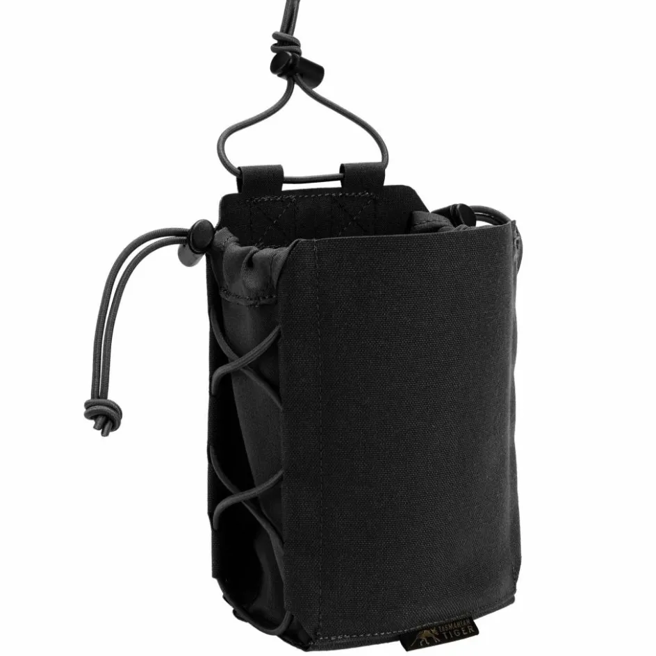 Der Inhalt der Tasche lässt sich per Kordel fixieren. Die Seiten sind aus elastischem Material und haben jeweils eine Kordel, über die die Tasche komprimiert wird. Sie eignet sich für Trinkflaschen und Stative bis circa 10,6 cm Durchmesser.