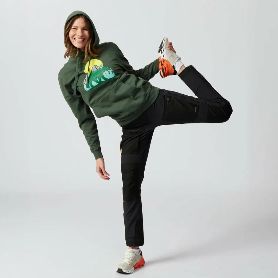 Für einen Blickfang sorgt der vorderseitige Print mit unserem Globetrotter-Bären in seinem natürlichen Habitat. So versetzt dich der Kapuzenpullover direkt in die passende Stimmung für den nächsten Trip ins Grüne.