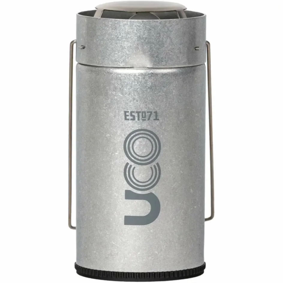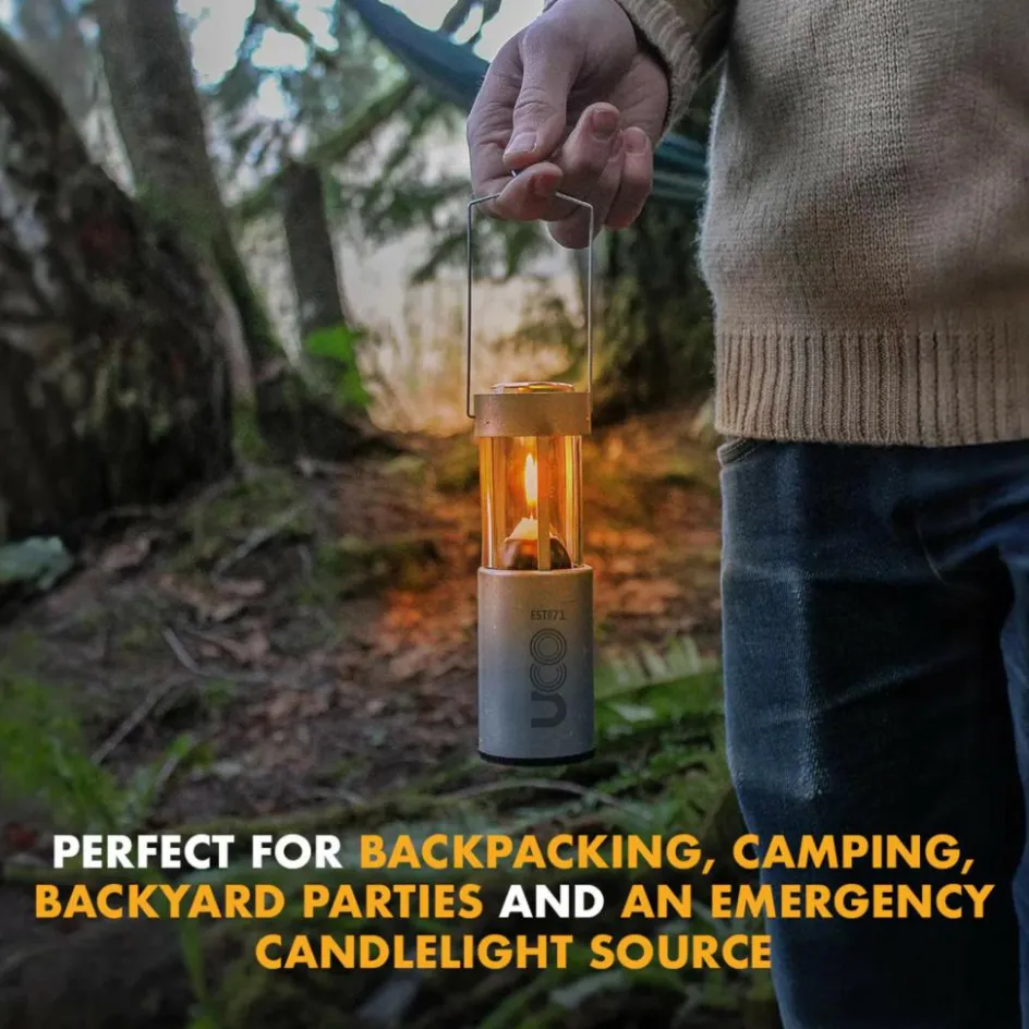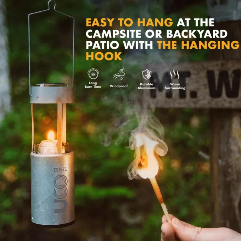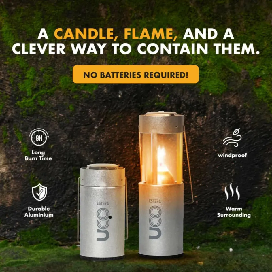 Die UCO-Kerzenlaterne bringt seit Dekaden ein stimmungsvolles Licht in die Camps dieser Welt. Für den Transport kann der Glaszylinder versenkt werden und wird so durch den Aluminiumkörper geschützt.