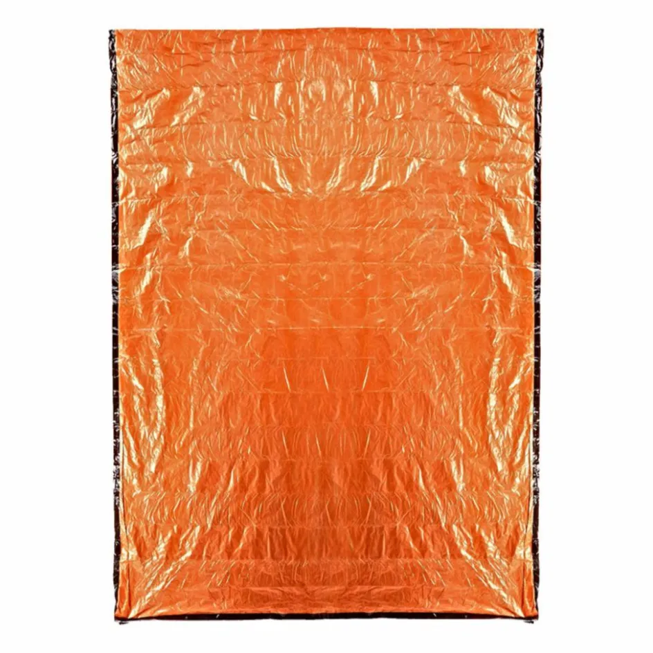 Wind- und wasserdichter Biwaksack für zwei Personen. Polyethylen ist, gemessen an der Wandstärke, sehr reißfest, UV-beständig und extrem leicht. Die Ränder sind zusätzlich eingefasst.