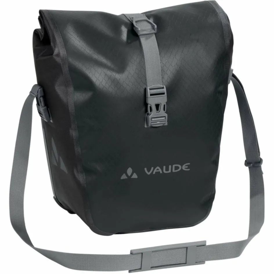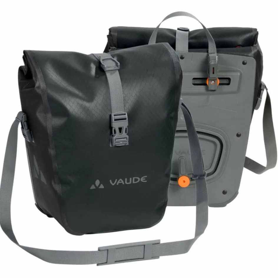 Sehr variabel am Rad: Das Aqua Front-Taschenpaar kannst du am Vorderrad- als auch am Hinterrad-Gepäckträger befestigen. Außerdem kannst du das Volumen per Rollverschluss einfach variieren.