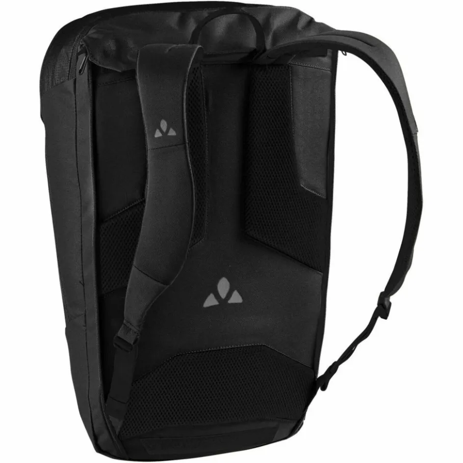 Die Cycle 20 II wird über die mit einem Schloss absperrbaren QMR-Haken (z. B. Abus 145/20, nicht im Lieferumfang enthalten) am Gepäckträger befestigt und ist im Handumdrehen zum Rucksack umgebaut. Dazu werden die beiden vertikalen Reißverschlüsse geöffnet und das gesamte Befestigungssystem in einem mit Klett verschlossenen Fach verstaut. Die Umbaufunktion wird auf einem eingenähten, leicht entfernbaren Etikett in wenigen Schritten erläutert. Die clevere Rucksack-Radtaschen-Kombination bietet aber noch mehr. Im großen Hauptfach mit Platz für DIN A4 Unterlagen hilft ein mit Reißverschluss zu schließender Netz-Organizer für Kleinutensilien dabei, Ordnung zu halten. Ein separates, mit Reißverschluss verschlossenes, gepolstertes Fach nimmt Laptops bis 15,6 Zoll auf. Auf der Front befindet sich eine flache Netztasche für das schnelle Verstauen von Zeitschriften oder nasser Kleidung. Ein Helmhalter sowie ansprechend ins Design integrierte reflektierende Elemente runden die Komfortausstattung ab. Das Hauptmaterial des Cycle besteht aus 50 % recyceltem Polyester, das Kontrastmaterial sogar zu 100 %. Unser Verwandlungskünstler ist mit EcoFinish PFC-frei wasserabweisend ausgerüstet. Das VAUDE Green Shape-Label steht für ein umweltfreundliches, funktionelles Produkt aus nachhaltigen Materialien.