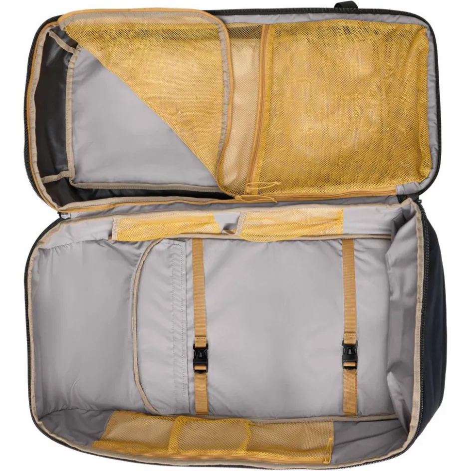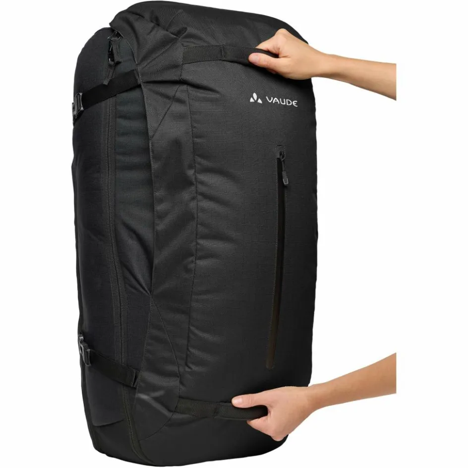 Für Weltenbummler: Der geräumige Reiserucksack Mundo 65+ verfügt über ein komfortables Tragesystem, das in Windeseile unter einer schützenden Abdeckung verschwindet, wenn es gerade nicht gebraucht wird – ideal also für Flugreisen und öffentliche Verkehrsmittel. Praktisch für unterwegs: Im Lieferumfang ist ein sehr leichter Daypack („To Go“) enthalten. Dadurch können die wichtigsten Sachen mit ins Handgepäck oder auf kurze Exkursionen genommen werden. Um möglichst schnell auf den Inhalt des großen Reiserucksacks zugreifen zu können, lässt sich das Hauptfach per verdecktem Reißverschluss nach vorne öffnen. Im praktischen Office-Organizer lassen sich Laptop und Zubehör sicher verstauen. Der Rucksack wurde dabei so konstruiert, dass Diebe nicht sofort Zugriff auf den RV haben – ein echtes Plus an Flughäfen oder anderen gefährdeten Orten. Zwei zusätzliche Griffe erleichtern das Anheben und Verstauen des Rucksacks.