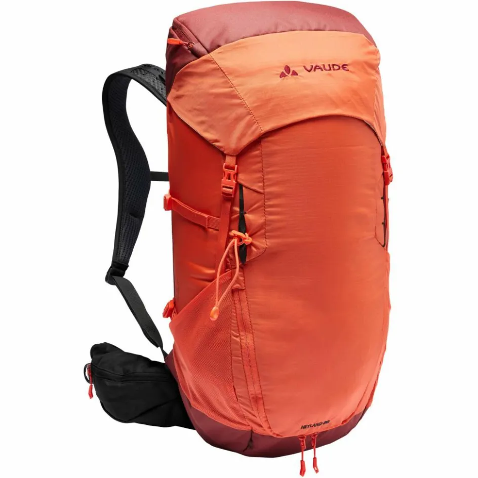 Der Toploader lässt sich dank weiter Öffnung kinderleicht bepacken und auch eine Trinkblase findet im Hauptfach Platz. Damit du leichter an weiter unten liegende Ausrüstung kommst, befindet sich ein zusätzlicher Reißverschluss auf der Unterseite. Für Wertgegenstände und kleinere Ausrüstung, die schnell zur Hand sein soll, bietet das Deckelfach genügend Platz und erleichtert die Organisation zusätzlich mit einem Netzfach im Inneren. Snacks für zwischendurch oder Taschentücher sind im Reißverschlussfach auf der Hüftflosse ebenfalls immer griffbereit. Um Platz im Hauptfach zu sparen, lassen sich Trinkflaschen, Handschuhe oder leichte Windbreaker bequem in den seitlichen Netzfächern verstauen. Und für kleinere Klettereinlagen, für die du beide Hände brauchst, können die Trekkingstöcke sicher auf der Rucksackfront fixiert werden. Damit bist du bestens für die nächste Wanderung oder den Klettersteig gerüstet!
