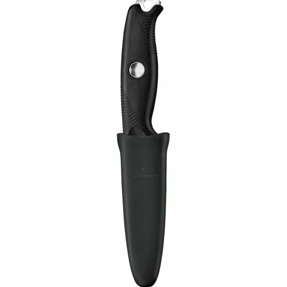 Das Venture Pro bietet dir eine hohe Funktionalität; die Klinge zeichnet sich durch eine sehr gute Schnitthaltigkeit aus (Härte: 59HRC) und bietet dank Full-Tang-Bauweise die nötige Robustheit bei groben Arbeiten. Eine scharfe 90-Grad-Kante am verlängerten Erl erlaubt dir das Schaben von Kienspänen sowie Feinarbeiten beim Schnitzen (konkave Formen, etwa beim Löffel). Der Klingenrücken hat ebenfalls eine scharfe Kante zum Schaben und Funkenschlagen mit dem Feuerstahl.