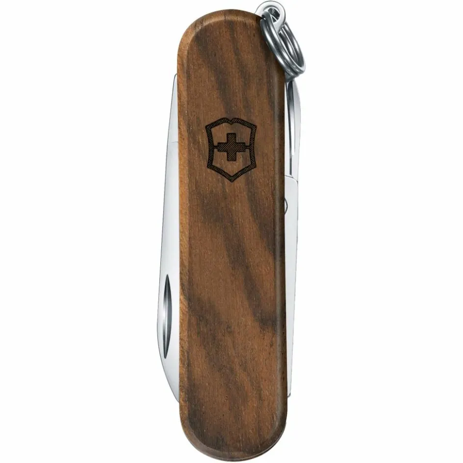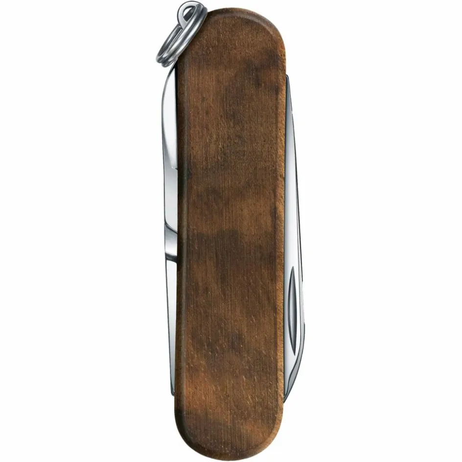 Das Walnussholz dieses Messers stammt aus europäischen Wäldern. Es sieht durch seine feine Maserung nicht nur besonders edel aus, sondern macht jeden Griff zu einem Unikat! Das Holz ist außergewöhnlich langlebig und liegt angenehm warm in der Hand. Du kannst es bei Bedarf individuell verzieren oder gravieren. Um das Nussbaumholz optimal zu pflegen, empfehlen wir, es gelegentlich mit etwas Speiseöl zu behandeln. Einziger Wermutstropfen: Victorinox-Messer mit Holzgriffschalen besitzen keinen Einschub für Pinzette oder Zahnstocher.