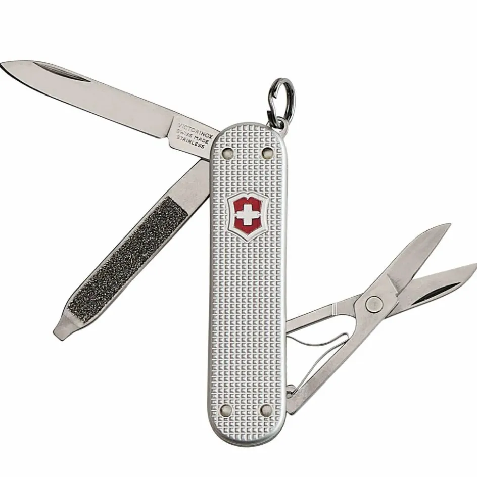 Das nur knapp 6 cm lange Taschenmesser kann mühelos am Schlüsselbund befestigt werden. Andernfalls verschwindet es unauffällig in der Hosen- oder Handtasche. Hergestellt in gewohnter Schweizer-Qualität und ideal geeignet, um es immer dabei zu haben. Das Classic SD Alox ist dafür mit fünf Funktionen ausgestattet: