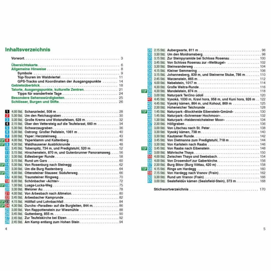 Die Landschaft des Walviertels ist wie gemacht fürs Wandern. Täler mit mäandernden, von mächtigen Granitblöcken begleiteten Bächen, laden zu ausgedehnten Runden ein. Der Nationalpark Thayatal und viele weitere Naturparks bieten herrliche Wandermöglichkeiten. Auf tschechischer Seite, in Böhmen und Mähren, findet sich ebenfalls eine Fülle von Touren und Wegen. Auch Kunst und Kultur kommen in diesem Wanderführer nicht zu kurz, denn im Waldviertel gibt es zahlreiche Stifte, Burgen und Schlösser, die sich auf vielen der Wanderungen besichtigen lassen.