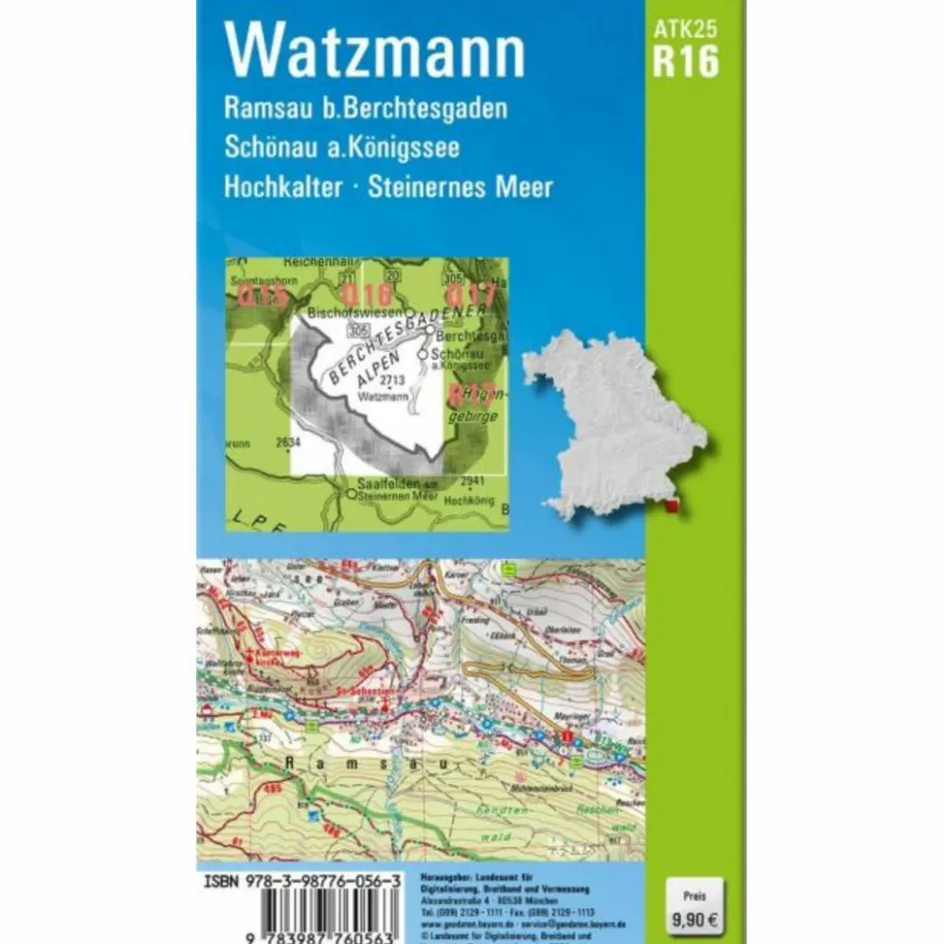 Kartenblatt ATK25-R16 Watzmann:REGION: Oberbayern, Berchtesgadener Alpen, Watzmann, Hochkalter, Steinernes Meer, Königssee, Nationalpark Berchtesgaden - ORTE: Berchtesgaden, Ramsau b.Berchtesgaden, Schönau a.Königssee, Sankt Bartholomä