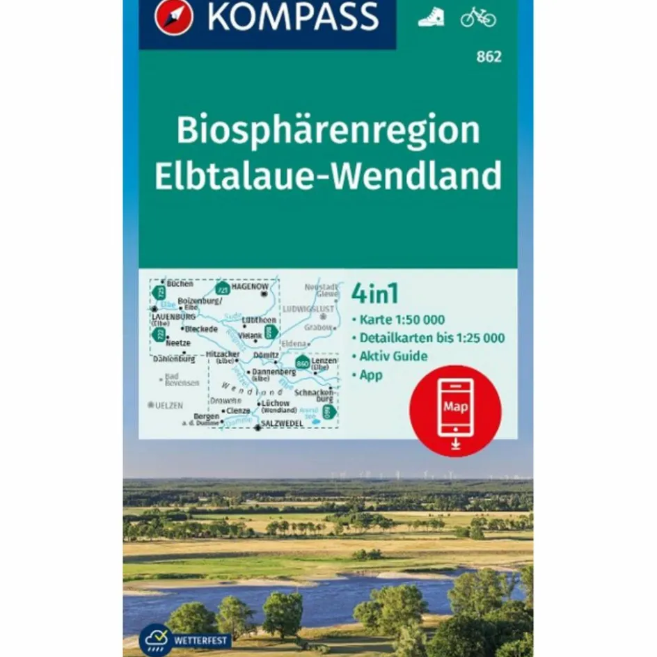 Wanderkarten Und Winterkarten|Wanderkarten Und Winterkarten^KOMPASS WANDERKARTE 862 BIOSPHÄRENREGION ELBTALAUE-WENDLAND