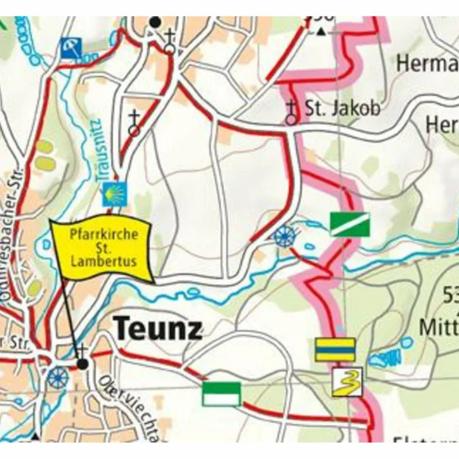 Die Wanderkarte Goldsteig beschreibt den Wanderweg von Marktredwitz nach Passau, der den Spuren einer alten Handelsstraße folgt, auf der „weißes Gold“ (Salz) transportiert wurde. Sie gab dem Wanderweg ihren Namen. Reizvoll an der Streckenführung sind die zwei Varianten, die sich dem Wanderer ab Thanstein bieten: Die Nordvariante führt entlang der Grenze zur Tschechischen Republik nach Passau; die Südvariante durchquert den Bayerischen Wald in etwas flacheren Gefilden. Welche Sehenswürdigkeiten den Wanderer auf seiner Tour erwarten, kann er im Infoteil nachlesen.