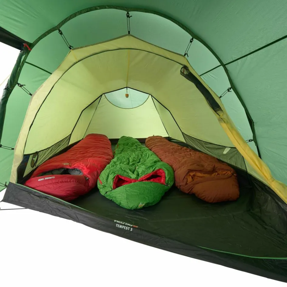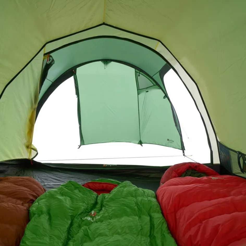 Trotz des asymmetrischen Schnitts, ist in der Apsis ordentlich Platz. Der Zutritt zum Zelt kann zu zwei Seiten erfolgen. Rucksäcke, Taschen und andere Ausrüstungsgegenstände finden ihren Platz im großzügigen Schnitt. Ist es eine besonders warme Nacht, kannst du die Apsis bis zum ersten Gestängebogen aufrollen und für maximale Belüftung sorgen. Vier seitliche Lüfter garantieren besten Luftaustausch bei schlechtem Wetter.