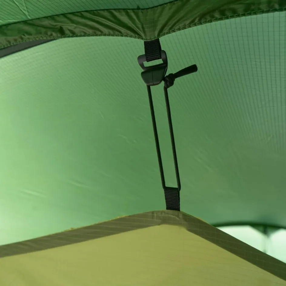 Willst du minimalistisch unterwegs sein, kannst du das Innenzelt ausknöpfen und nur mit dem Überzelt als Regenschutz auf Tour gehen. Das minimiert das ohnehin schon geringe Gewicht noch weiter.