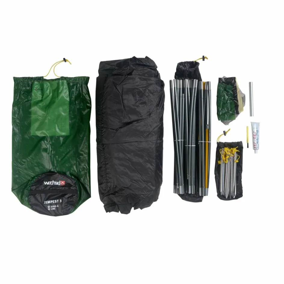 Tempest 3, Heringe, Abspannleinen, Reparaturhülse, Gestänge, Packbeutel