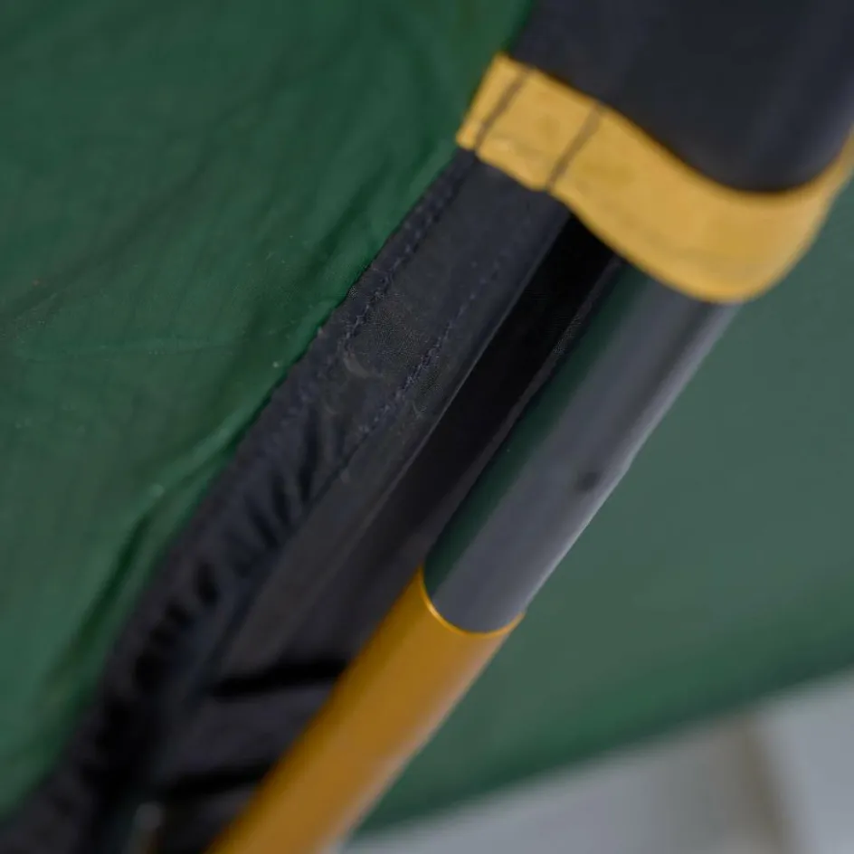 Das Gestänge ist außenliegend und wird durch farbcodierte Gestängekanäle geschoben. Das Innenzelt ist eingehängt und wird in einem Rutsch mit dem Außenzelt aufgebaut. Die nach hinten abfallende Form ist aerodynamisch und entsteht durch einen kürzeren Gestängebogen. Diese abgeflachte Seite wird bei Sturm in den Wind gestellt, um wenig Windangriffsfläche zu bieten.