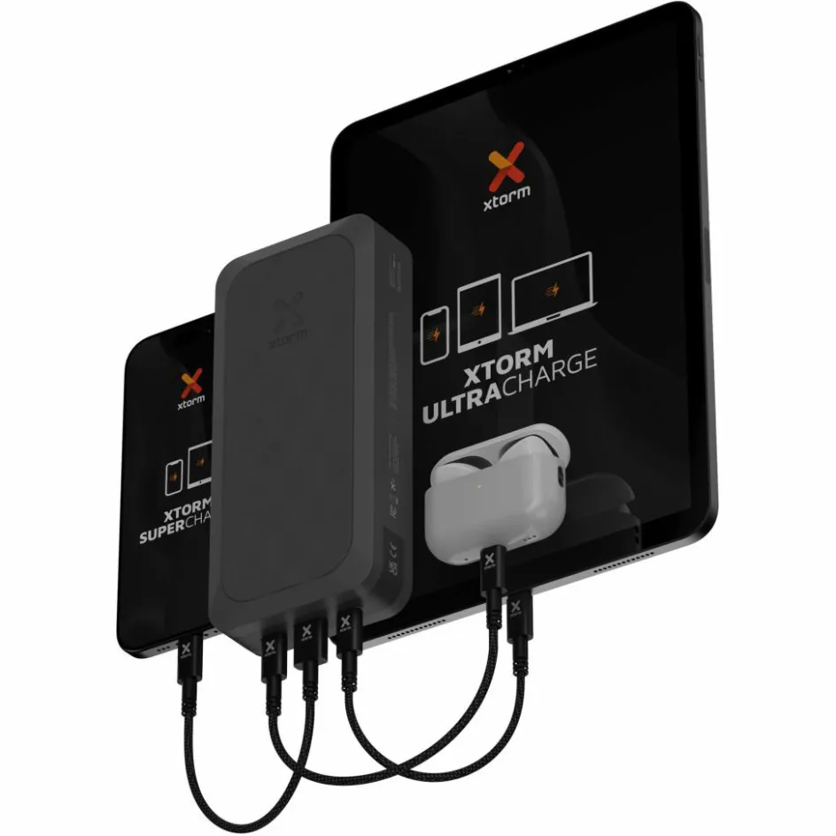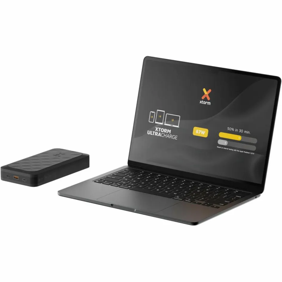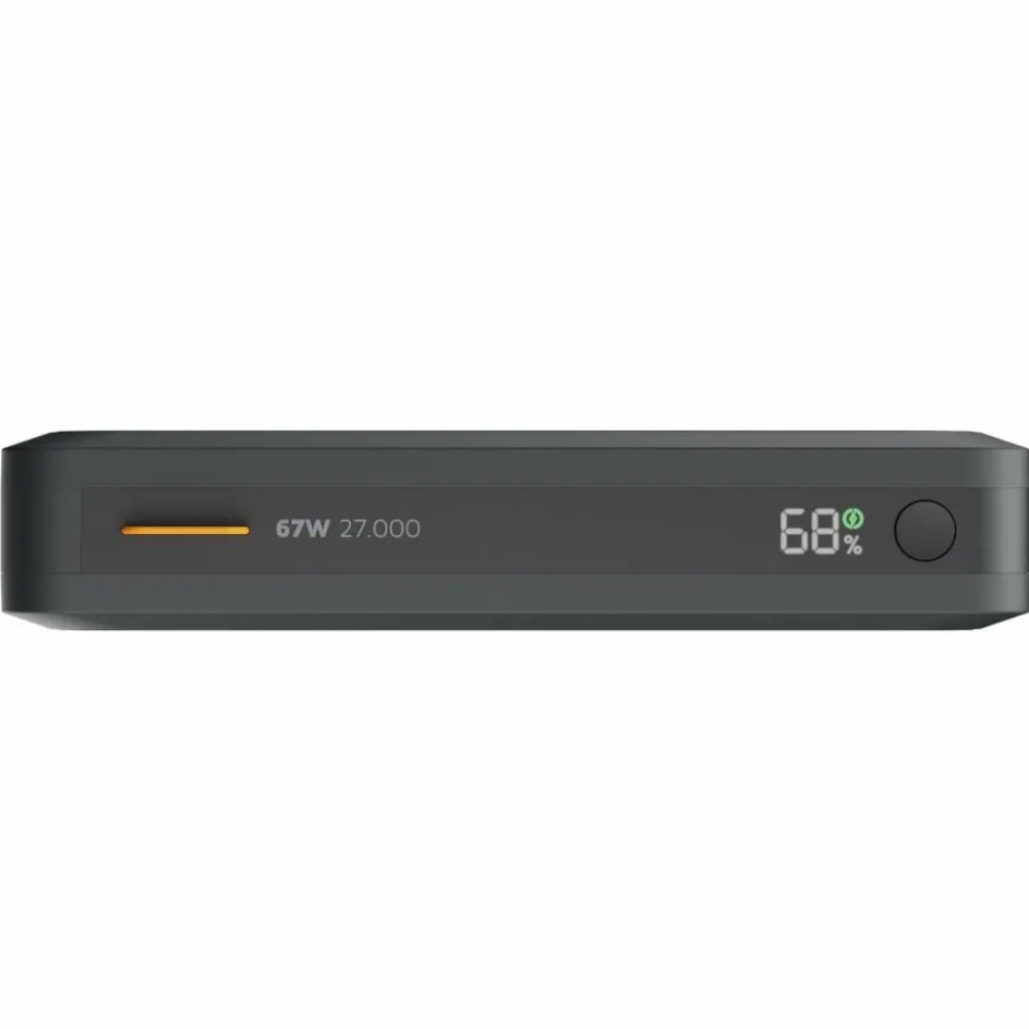 Die handliche Powerbank bietet bis zu 67 W Power am USB-C-Ausgang. Insgesamt stehen drei Anschlüsse zur Verfügung: Neben dem leistungsstarken 67-W-USB-C-PD-Anschluss gibt es einen weiteren 27-W-USB-C-Anschluss und einen 18-W-USB-A-Anschluss. Alle drei Ladeplätze können einzeln oder gleichzeitig genutzt werden.
