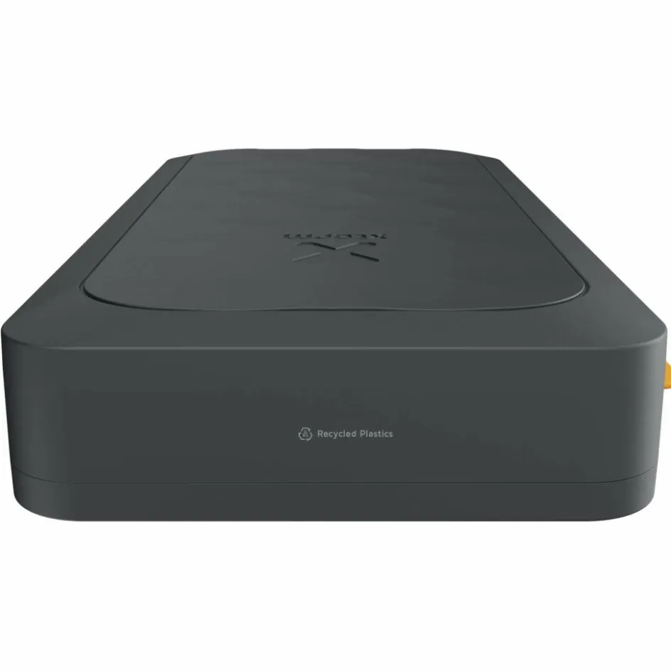 Das Gehäuse besteht größtenteils aus recyceltem Kunststoff und liegt dank der angenehmen Oberflächentextur gut in der Hand. Ein integriertes Digitaldisplay zeigt den Ladezustand der Powerbank präzise in Prozent an.