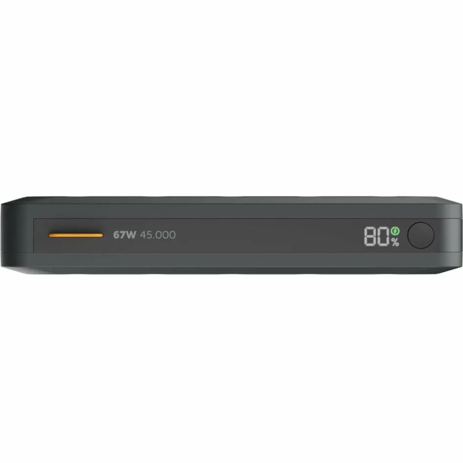 Power wird hier großgeschrieben. Mit einer beeindruckenden Kapazität von 45.000 mAh und einer 67-W-Schnellladefunktion lädt die Powerbank auch große Verbraucher wie Notebooks und Tablets schnell auf.