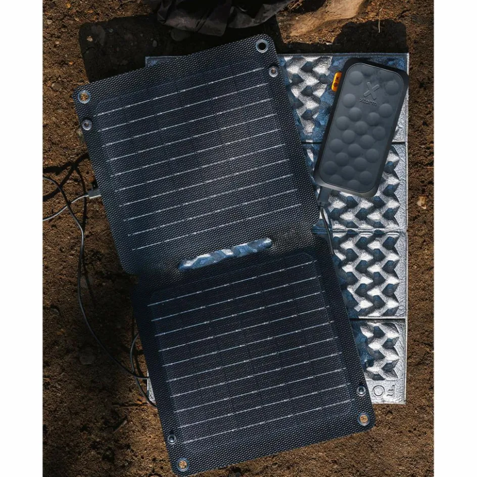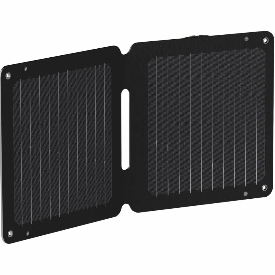 Die beiden flachen Panels liefern bis zu 14 Watt Leistung und sind spritzwasserfest nach IPX4. Ausgestattet mit einem USB-A- und einem USB-C-Ausgang kannst du gleichzeitig zwei Geräte laden. Vier Ösen ermöglichen die Befestigung am Gepäck. Zusätzlich befindet sich auf der Rückseite ein ausklappbarer Ständer, mit dem du das Panel optimal zur Sonne ausrichten kannst. Ein integriertes Display zeigt währenddessen den Ladestrom in Ampere an.