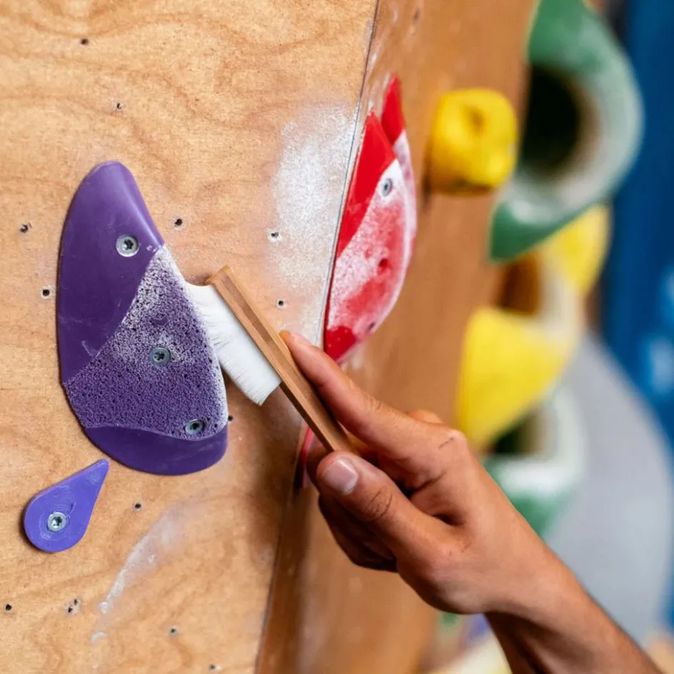 Die robuste und langlebige Boulderbürste ist besonders gut für den Einsatz in Boulder- und Kletterhallen geeignet. Aufgrund der harten Borsten sollte sie jedoch nicht auf empfindlichem Fels wie Sandstein oder Kalk verwendet werden.