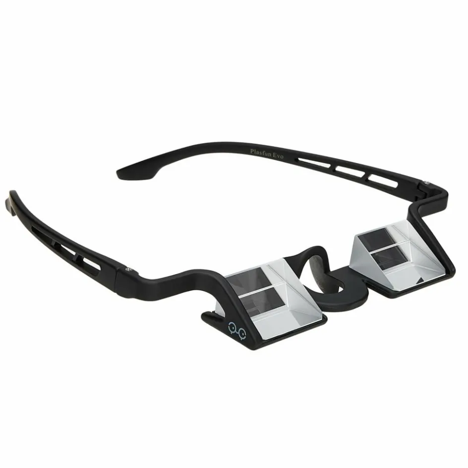 Die Plasfun kann auch mit einer optischen Korrekturbrille kombiniert werden. Durch eine flach geformte Nasenauflage kannst du sie vor deine normale Brille setzen.