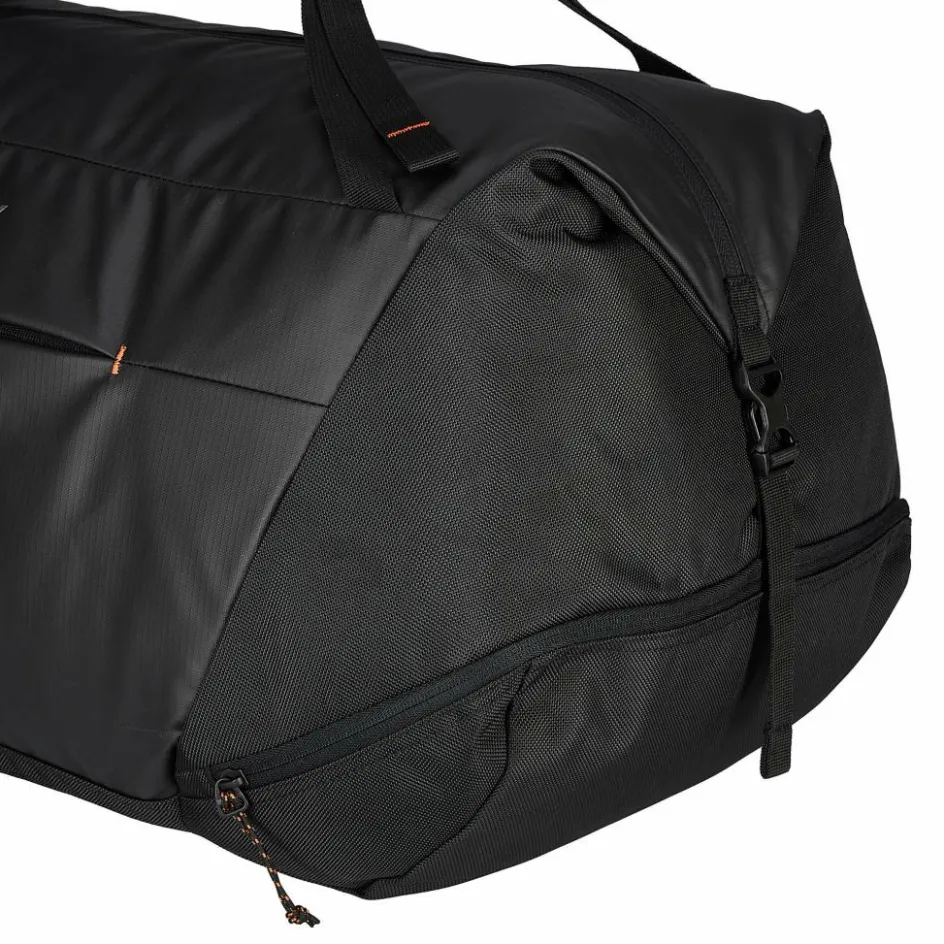 Die gepolsterten Schultergurte dienen gleichzeitig als Tragegriffe. Je nach Wegstrecke und -beschaffenheit kannst du die MT Duffel also bequem in der Hand oder auf dem Rücken tragen. Ist die Duffel nicht vollbepackt, lässt sie sich mithilfe der Kompressionsriemen an den Seiten komprimieren.
