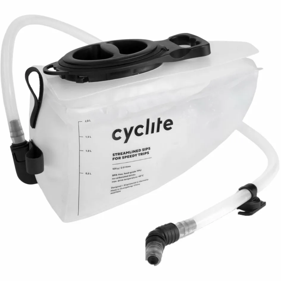 Die Form ist so gewählt, dass sich die Blase in die Tasche schmiegt und trotz des üppigen Fassungsvolumen von zwei Litern oberhalb noch Platz für dein Equipment lässt. Der Schlauch wird durch die Öffnung an der Rückseite der Aero Bag geführt. Du befestigst ihn so am Lenker oder an den Aufliegern, dass du ohne Aufwand während der Fahrt daraus trinken kannst.