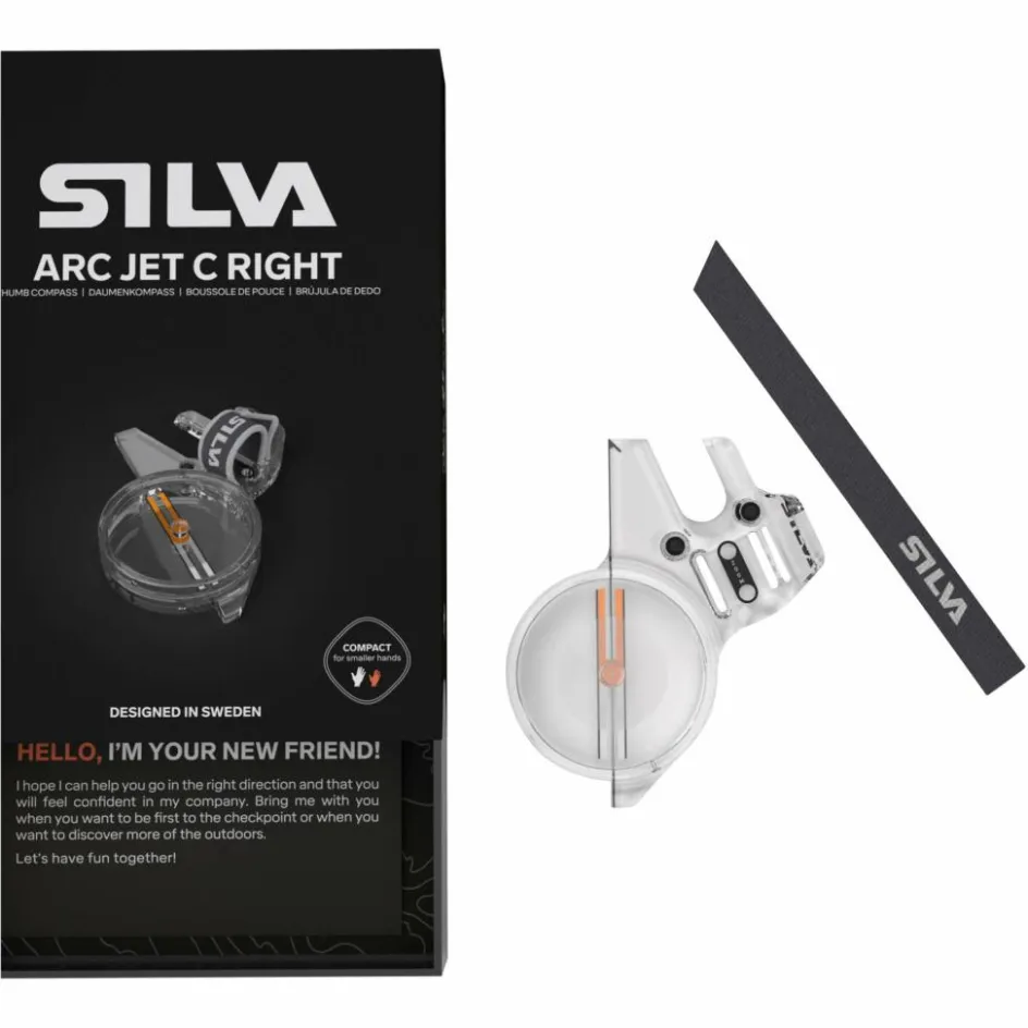 Der Arc Jet C ist die handlichere Variante des originalen Arc Jet-Kompasses und eignet sich besonders gut für kleinere Hände. Er ist für die rechte Hand entworfen und verfügt über die gleiche hochwertige Silva Jet 2.0-Hochleistungsnadel sowie über die identische Kompassdosengröße und -qualität wie das Standardmodell – hat aber eine kleinere Daumenauflage.
