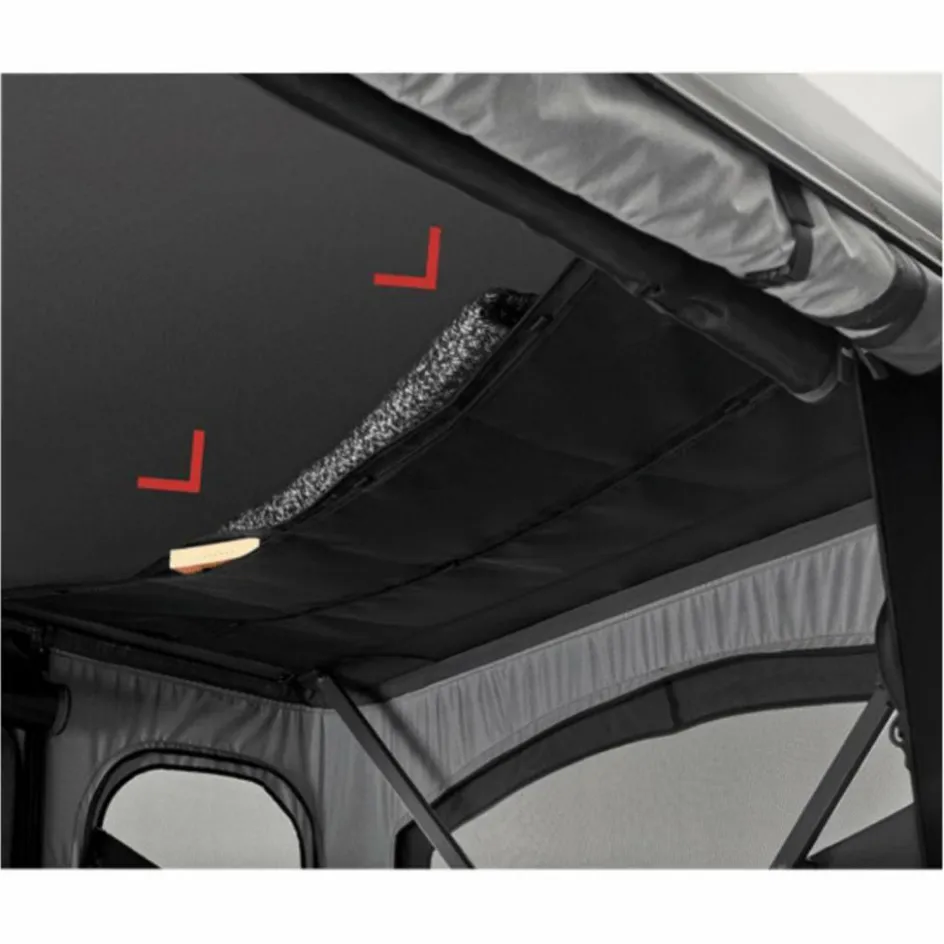 Eine geräumige Oberschale ermöglicht dir auch im geschlossenen Zustand Platz für Utensilien. So musst du nicht jeden Morgen das Bett einpacken, sondern kannst Schlafsack, Kissen und andere Reiseutensilien im Dachzelt belassen.