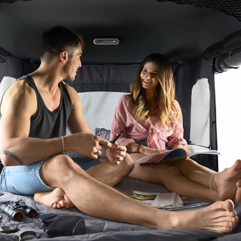 Das Maggiolina Grand Tour Dachzelt 360 besitzt eine gewichtssparende Konstruktion und kann durch das spezielle Design auch auf kleinen Personenkraftwagen montiert werden.