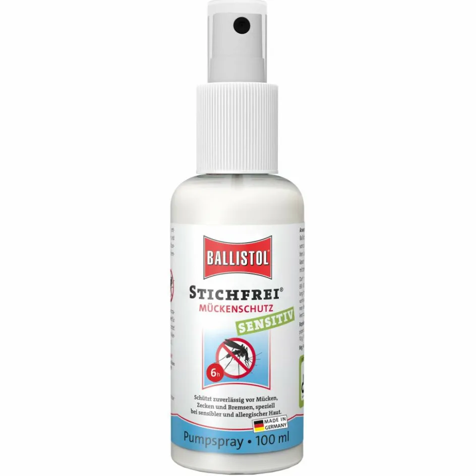 Für Allergiker und Menschen mit empfindlicher Haut wird der Markt an Insektenschutzsprays schnell sehr überschaubar. Mit dem Stichfrei Sensitiv Pumpspray steht dir jedoch ein Mittel zur Verfügung, das mit 10 % Icaridin Stechmücken, Zecken und Bremsen effektiv abwehrt. Es kann auch während der Schwangerschaft und Stillzeit verwendet werden. Das Spray klebt nicht auf der Haut und wurde vom Deutschen Allergie- und Asthmabund e. V. (DAAB) getestet und empfohlen. Durch den Verzicht auf Duftstoffe besitzt es einen kaum wahrnehmbaren Geruch und eignet sich damit auch für empfindliche Nasen.