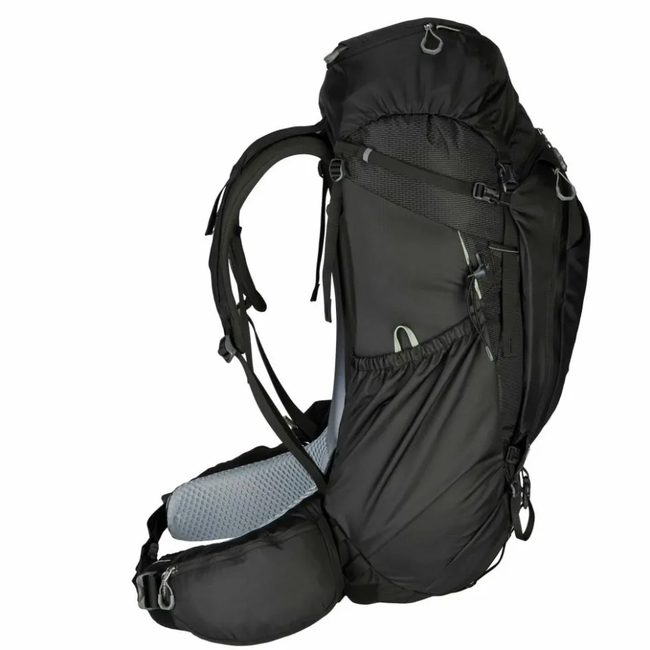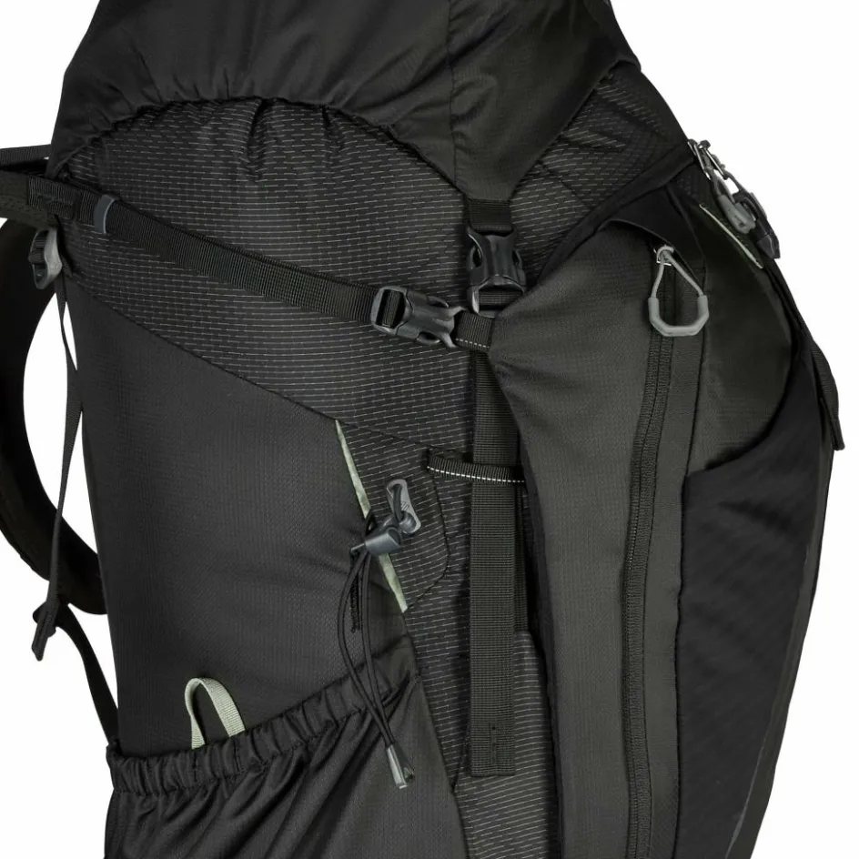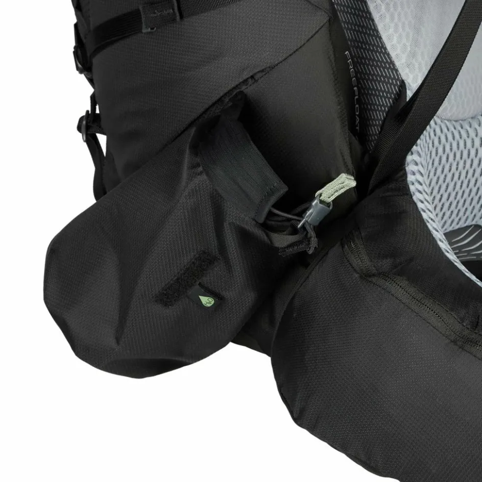 Auf den ersten Blick fällt das Steckfach auf dem linken Schultergurt auf. Darin kannst du entweder deine Sonnenbrille griffbereit verstauen oder ein GPS-Notrufgerät wie das Garmin InReach Mini 2 (optional erhältlich). Das Frontfach wurde mit 420D Nylon verstärkt, sodass du dir beim Ablegen des Trekkingrucksacks keine allzu großen Gedanken um Abrieb machen musst. Auch das seitliche Steckfach besteht nun aus robustem Nylon und wurde zudem vergrößert. So eignet es sich perfekt für sperrige und scharfkantigere Gegenstände wie Zeltgestänge oder Trekkingstöcke.