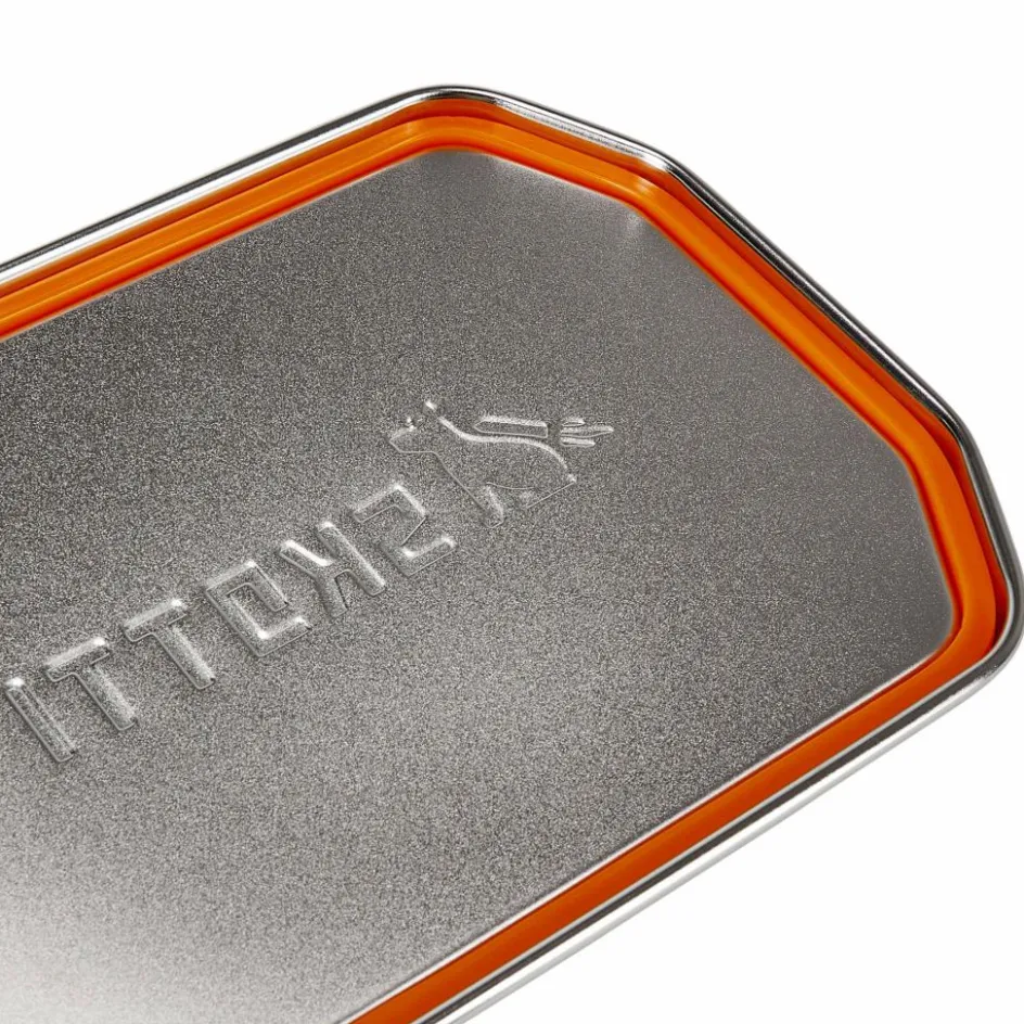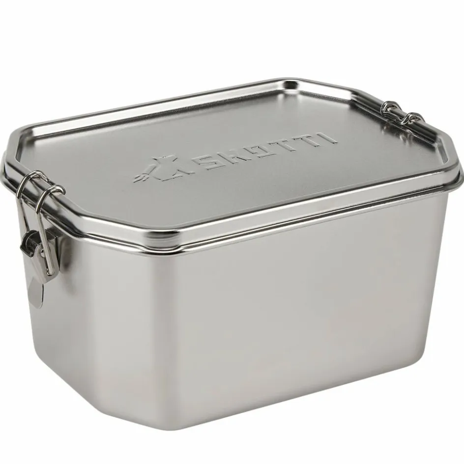 Große Edelstahldose mit 2,5 Litern Volumen, die sich nicht nur zum Transport deiner Speisen eignet, sondern auch als Topf oder Pfanne auf deinem Skottie oder Campingkocher verwendet werden kann.