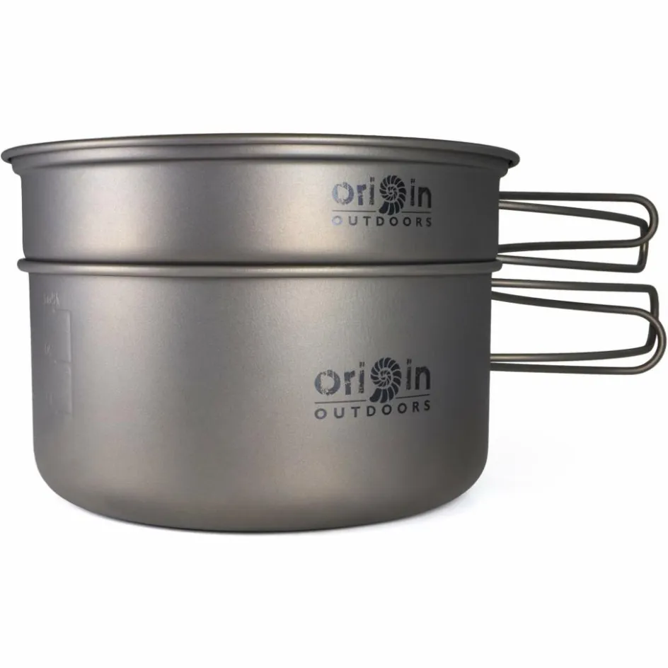 Das Kochset von Origin Outdoors ist die perfekte Begleitung für Touren, auf denen jedes Gramm zählt. Mit 214 g ist es nicht nur ultraleicht, sondern lässt sich dank Klappgriffen auch gut verstauen.