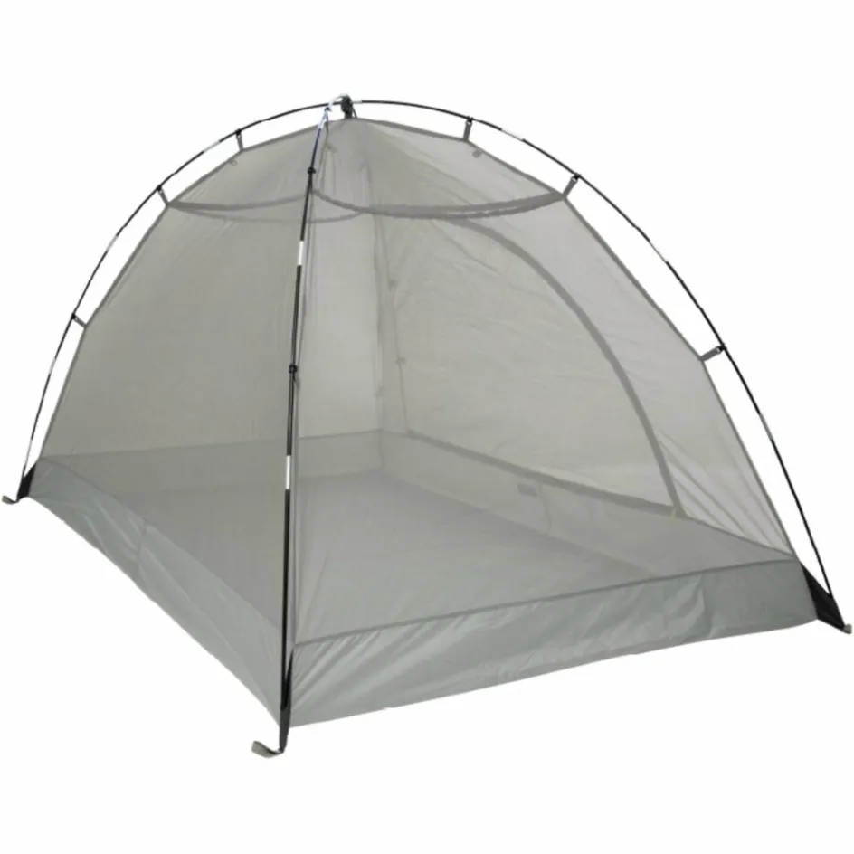 Für zwei Personen ausgelegt, bietet das Moskitonetz mit der selbsttragenden Kuppelzelt-Konstruktion einen luftigen Schlafplatz und schützt zuverlässig vor Mücken und Insekten. Der stabile Boden aus wasserdichtem T-Cover Tex besitzt eine Wassersäule von 10.000 mm, das Gestänge besteht aus Fiberglas. Das Tatonka Double Moskito Dome lässt sich auch sehr gut als Vorratszelt nutzen.