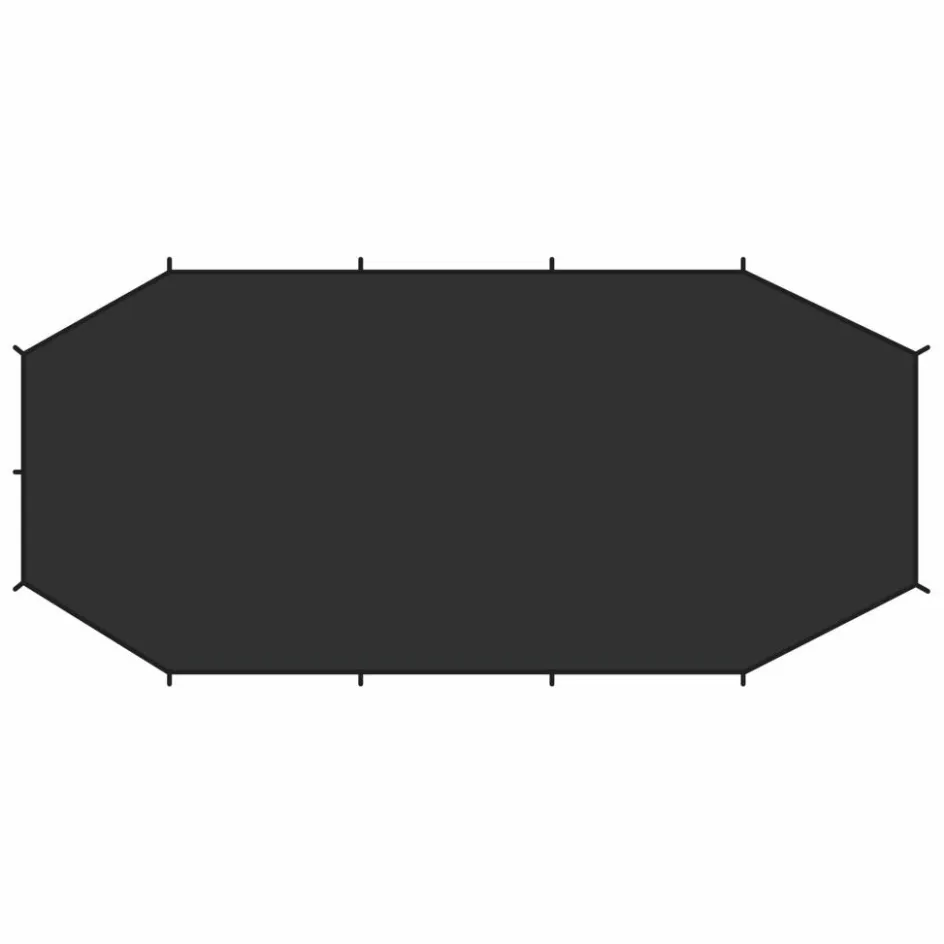 Footprint aus strapazierfähigem, wasserdichtem und PU-beschichtetem 70D-Nylon. Entspricht dem kompletten Grundriss des Zeltes (inklusive Apsis). Befestigt wird die Unterlage mit Knebelknöpfen.