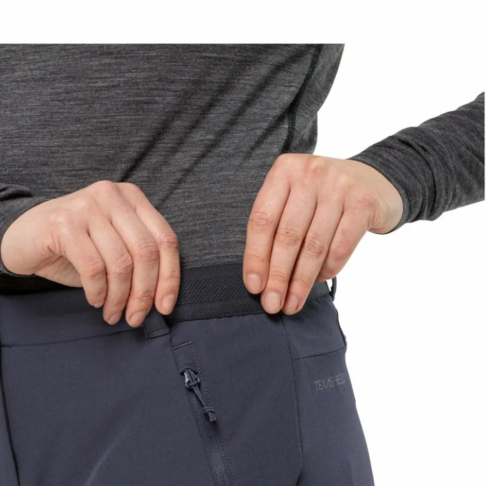 Die Geigelstein Pants W kann mit elastischem Softshell-Material und einem bequemen Sitz punkten. Sie begleitet dich bei kurzen und längeren Touren über Stock und Stein.