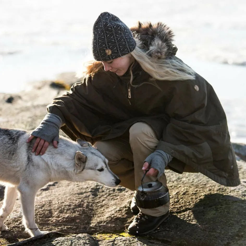 Der vielseitige G-1000 Poncho wurde von der praktischen Kleidung der Samen inspiriert. Er ist knielang und schützt an kalten Tagen zusätzlich vor Wind und Schnee.