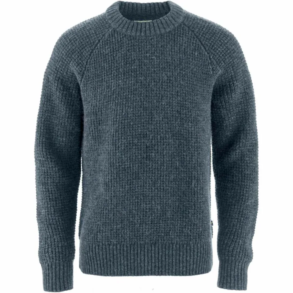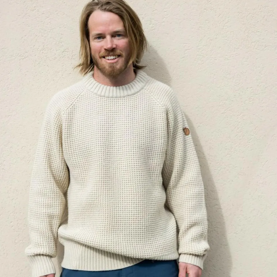 Ärmelbündchen, Kragen und unterer Saum stehen im Kontrast zur Waffelstruktur an Körper und Ärmeln: Diese sind in Rippstrick-Optik gehalten und machen aus dem Övik Waffel Knit M einen Pullover, den man jeden Tag anziehen könnte. Die Wolle spielt hier natürlich auch ihre anderen Fähigkeiten aus: Neben dem ausgezeichneten Wärmevermögen ist Wolle geruchshemmend und feuchtigkeitsleitend. Außerdem kann diese Naturfaser auch dann noch Wärme spenden, wenn sie feucht geworden ist. Und das Klima in einem solchen Wollpullover ist beinahe unvergleichbar: auch wenn du dich nach der Kälte draußen wieder in einem warmen Raum aufhältst, sorgt die Faser für ein angenehmes Tragegefühl – ganz ohne zu überhitzen. Typisch Wolle!