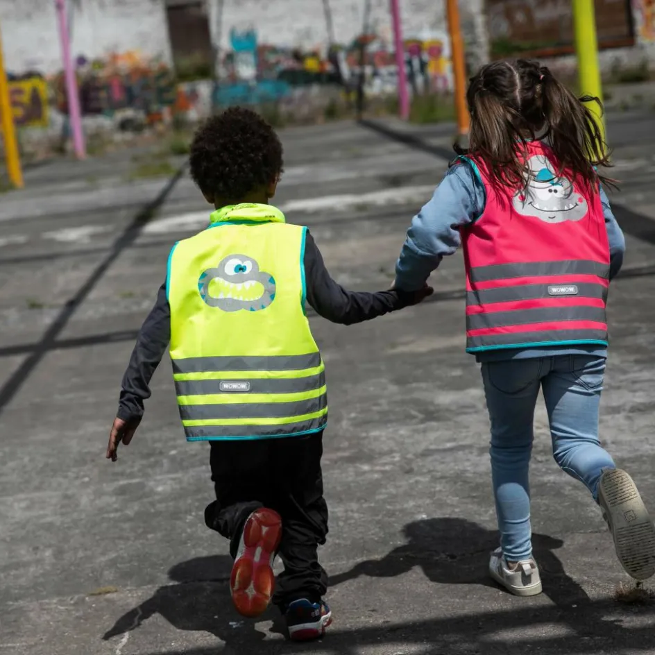 Die Die Reflex-Kinderweste Crazy Monster strahlt nicht nur in der Dunkelheit, sondern hat auch noch ein freundliches Monster auf der Rückseite – Aufmerksamkeit garantiert!