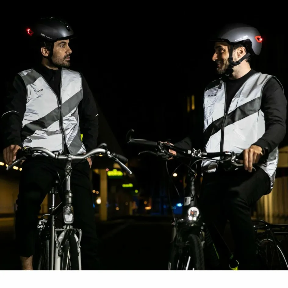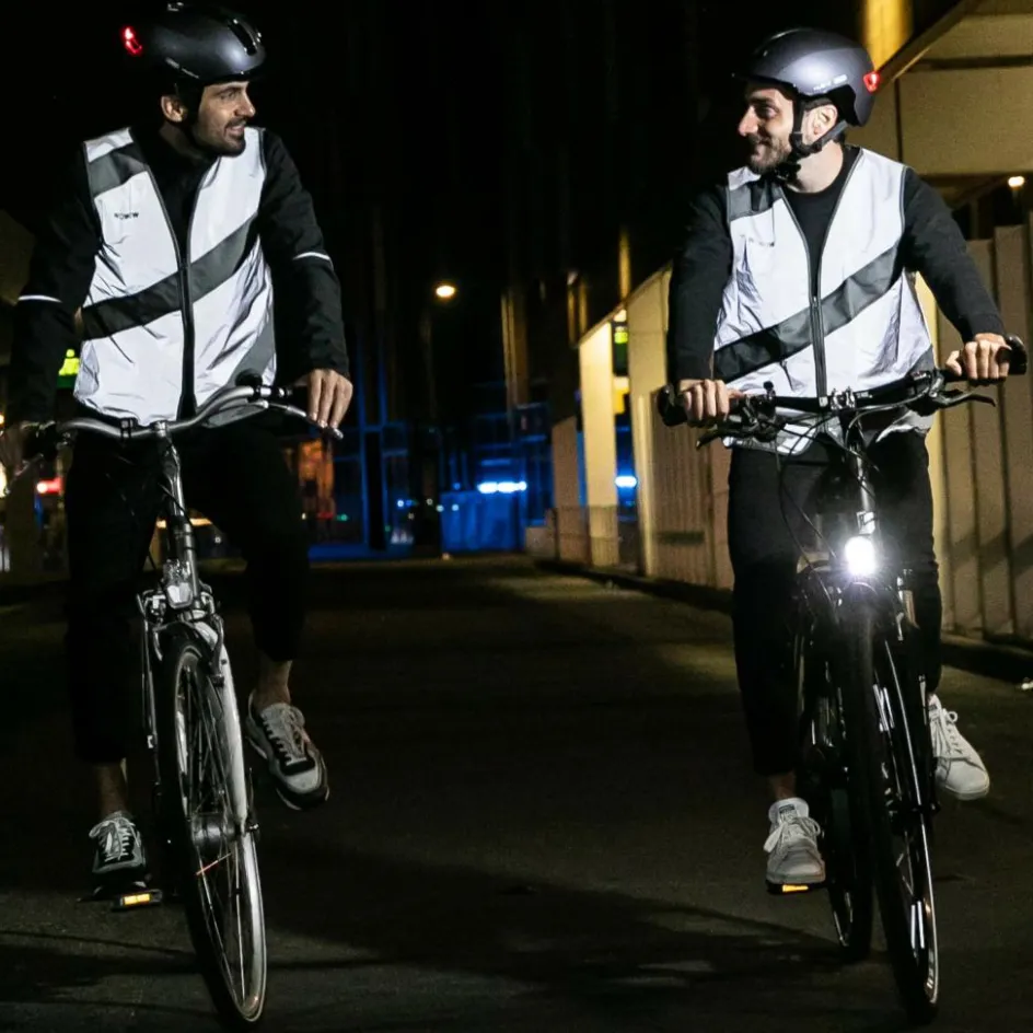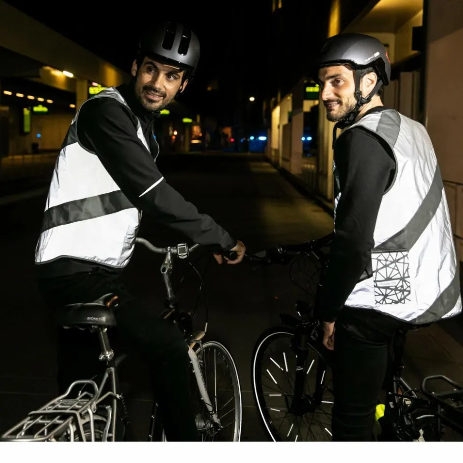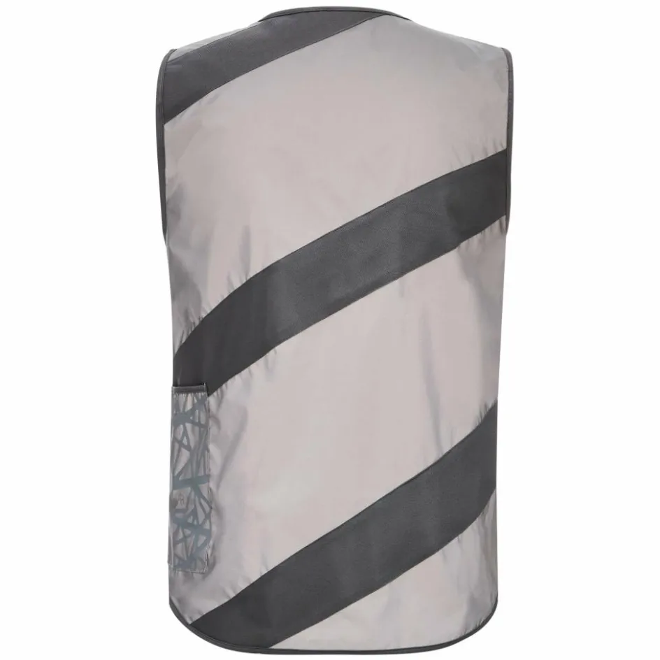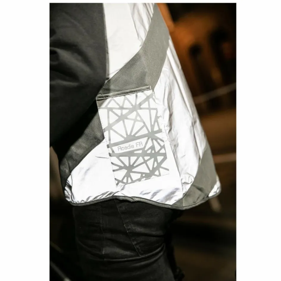 Vollständig reflektierende Weste mit grauen Streifen: wer nicht auf Signal-Gelb steht, aber mindestens genauso gut gesehen werden möchte, fährt (im Sinne des Wortes) mit der Roadie FR richtig gut!