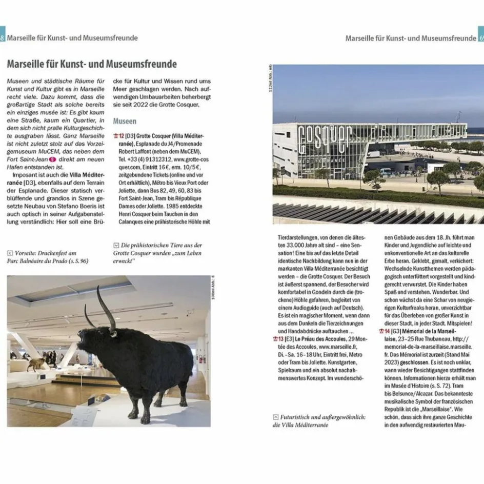 Marseille, die älteste Stadt Frankreichs, verzaubert mit mediterranem Flair und ihrer Lage am Meer. Prächtige Boulevards und versteckte Hinterhöfe laden zu Streifzügen ein und an jeder Ecke locken kulinarische Versuchungen. Oberhalb der Stadt thront die Basilique Notre-Dame-de-la-Garde mit ihrer goldglänzenden Madonna. Am quirligen Vieux-Port trifft man auf antike Festungsmauern und moderne Museumsbauten wie das MuCEM oder die Villa Méditerrannée und entlang der Küstenstraße Corniche warten paradiesische Strände auf Sonnenhungrige. Aber auch Ausflüge in die Umgebung sind lohnenswert: auf den Spuren von Cézanne in L’Estaque, zu Grillfisch in Les Goudes und zum Kraxeln in den Calanques.